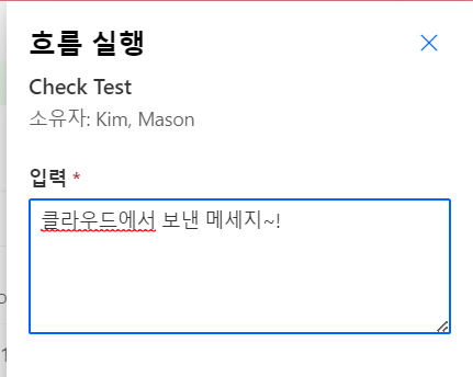 메세지를 입력하고 흐름을 실행해본다..