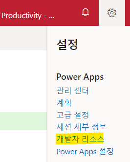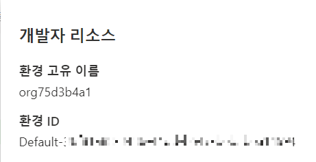 파워 앱스 > 설정 > 개발자 리소스에서 환경 ID를 찾을 수 있고,